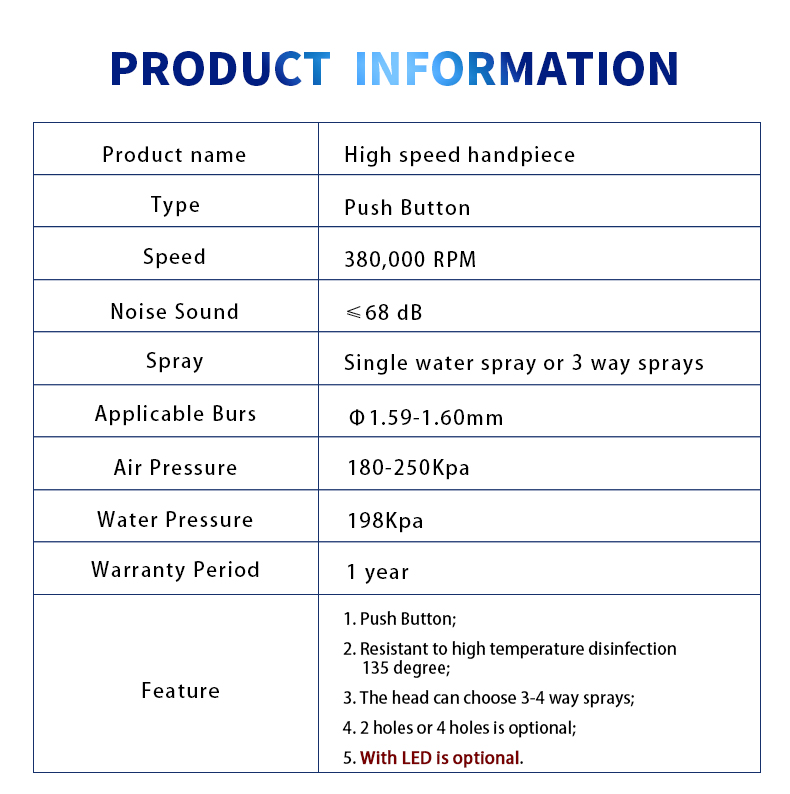 Standard high Speed Handpiece(Push type, Generator) 2H